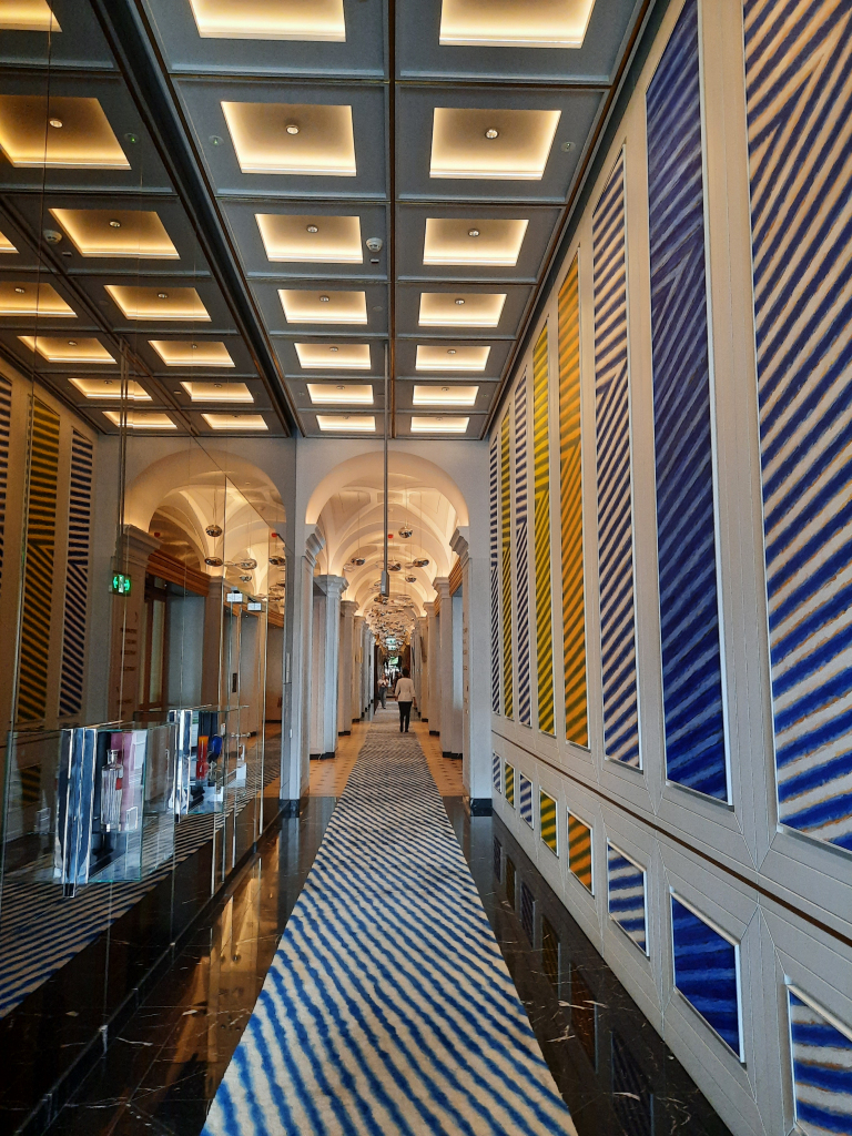 After being badly damaged during World War 2, it was rebuilt in the early 1960s before closing again in 2013. The lovingly restored and reinvented hotel re-opened in 2018 (too late for our guidebook!) and according to the Raffles’ website” has stunning contemporary interiors, courtesy of the acclaimed Boris Kudlicka of WWAA.” With just 106 rooms and suites we were hoping the hotel would not feel too busy.