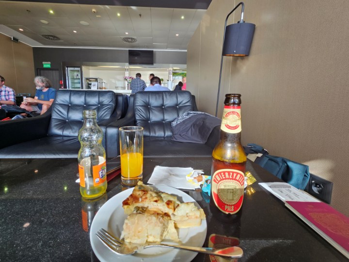 It felt like a long walk to the lounge, probably not helped by having to go through passport control as we headed to the non-Schengen side of the terminal. After being frustrated by some non-working lifts we made it downstairs to the lounge. Since this trip was taken in 2023 the lounge has undergone some refurbishment which hopefully means it’s a bit nicer than what you see in my photos below. However, consensus online is that the Fantazia lounge before passport control is much nicer in terms of both comfort and especially in terms of food. Anyway, lets continue with the tale. We entered the lounge thanks to our BA Club Europe Tickets and eventually found a relativity comfy sofa and table combo to make ourselves as home. Once again failing to shake the BBC Documentary crew that appeared to be tailing us since check in.