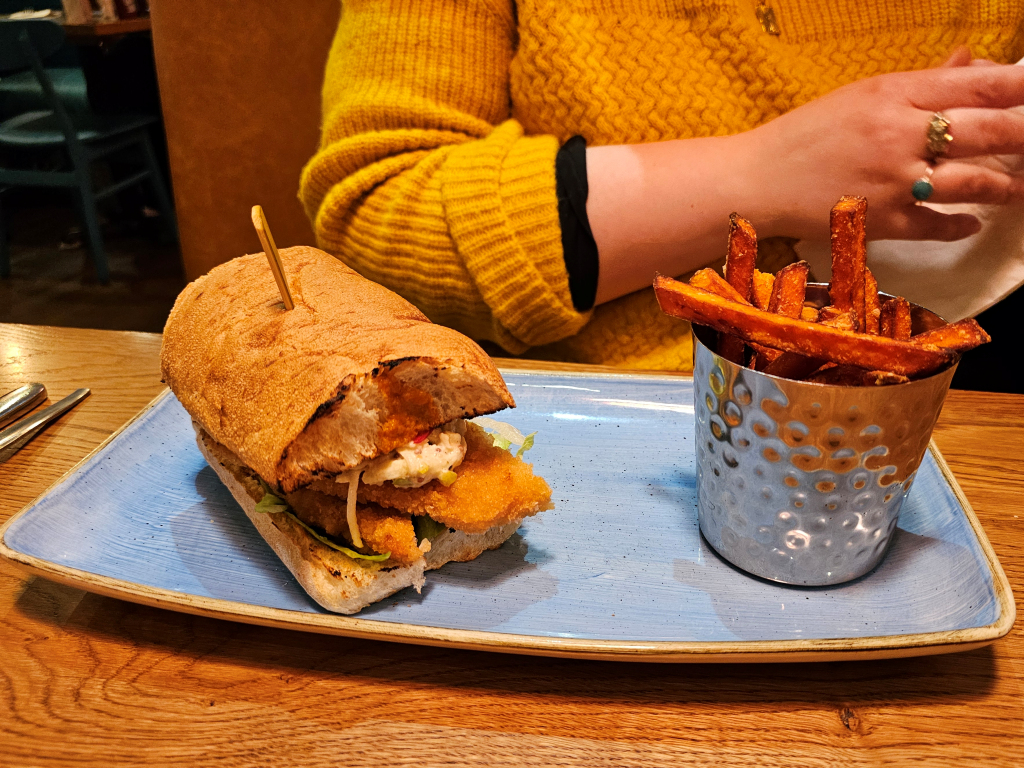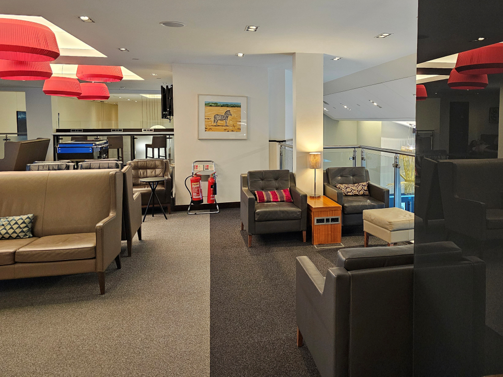 We were waved over to the First Class end, after eventually spotting the agent peeking out behind a small group checking in. Our bags dropped for the night we then had a walk through the airport stopping for dinner at Giraffe… Oh dear.