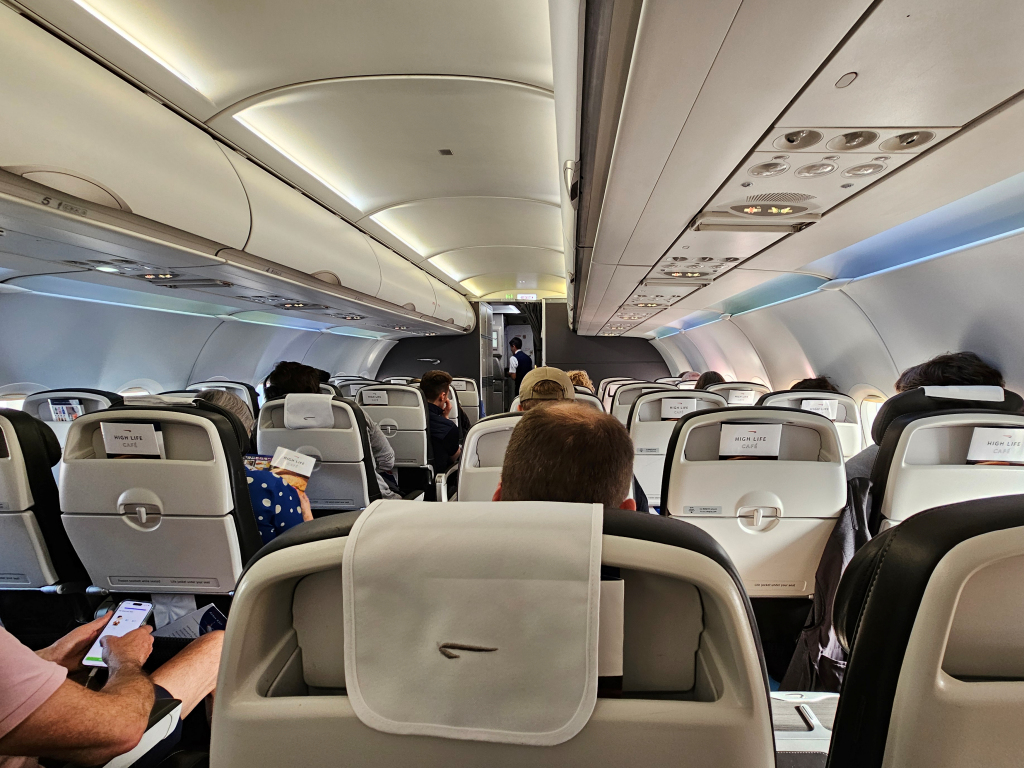 Thankfully the occupants of one of the aisle seats was kind enough to switch so Anne-So and I could sit together. The good news continued as our seventeen year old A321 was not looking her age, unlike some of the tired old ex BMI aircraft where the cabin interior often sports a premium silver duct tape trim.