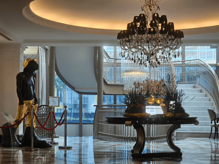 The first thing that we noticed as we arrived at the hotel were the extensive roadworks surrounding what was otherwise a prime location in Central Porto. These works were to allow for the construction of a new metro line and are hopefully now complete. Once we finally managed to navigate to the entrance of the hotel we made our way to check in. Palacio Das Cardosas was a former 18th Century Palace and later a bank. In 2011 it was transformed into a luxury hotel with just over 100 rooms and suites.